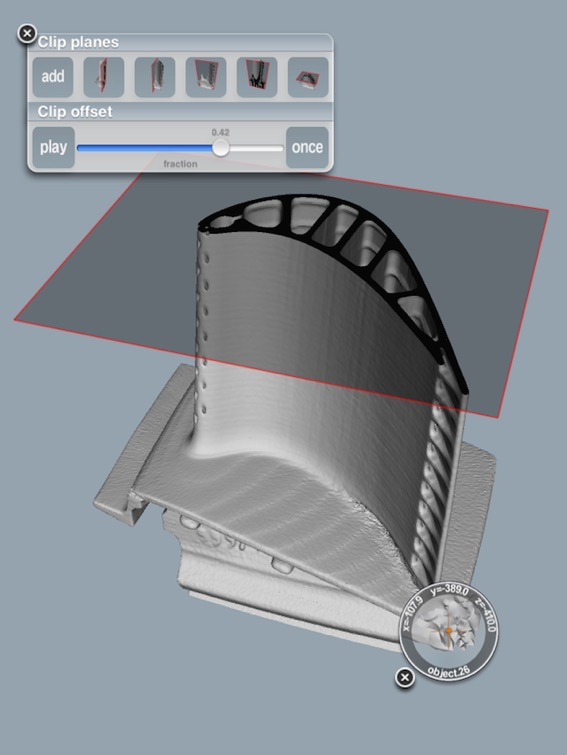 Cross-section of a turbine blade from the Large Geometric Models Archive at Georgia Institute of Technology on an iPad 2.